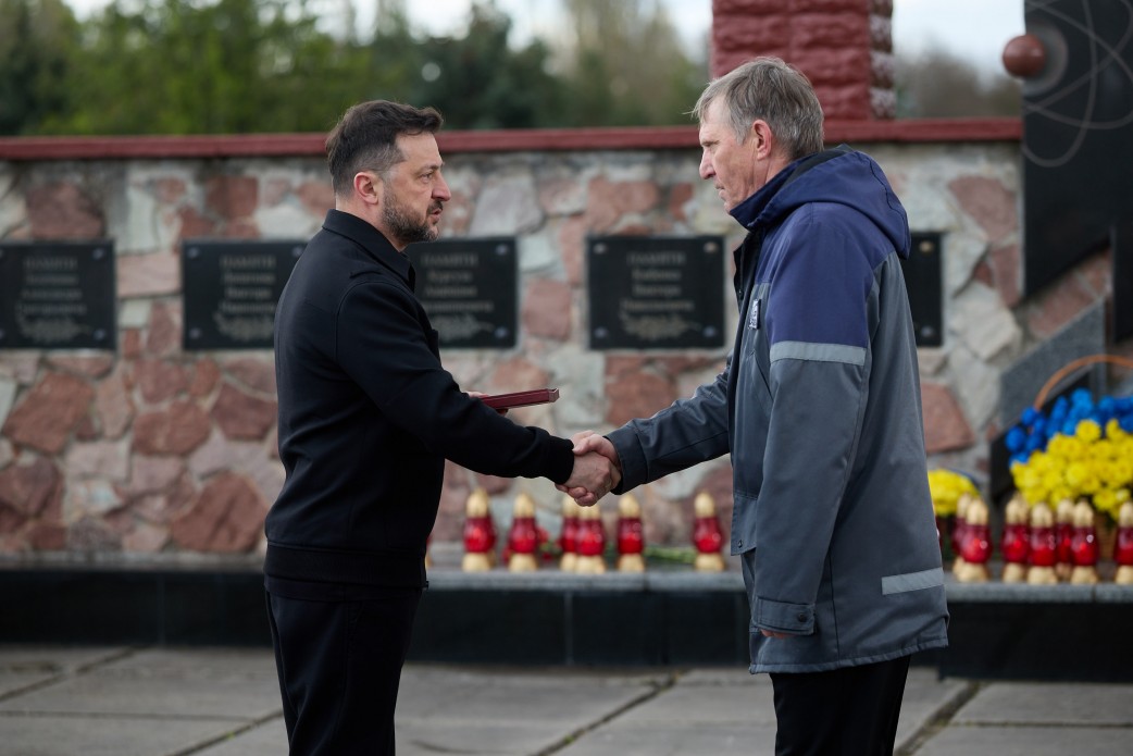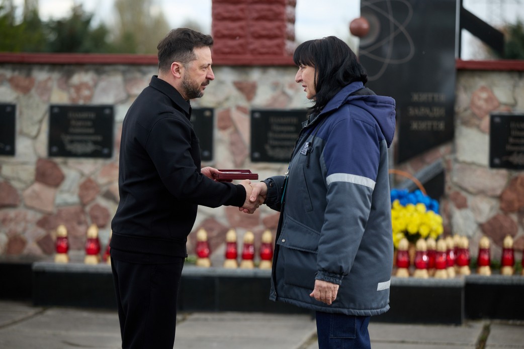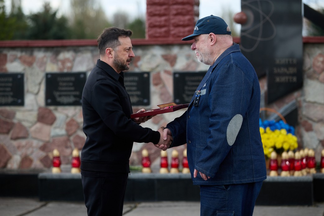 Президент України Володимир Зеленський відзначив державними нагородами ліквідаторів аварії на Чорнобильській АЕС та наслідків минулорічного удару російського дрона по конфайнменту, а також працівників станції, які забезпечували її роботу в умовах окупації у 2022 році.